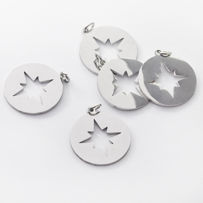 Zawieszka ze stali chirurgicznej róża wiatrów w kółku w kolorze srebrnym 20mmTo starannie wykonany produkt ze stali chirurgicznej 316L, który dobrze prezentuje się w codziennym użytkowaniu. To materiał chętnie wybierany do biżuterii handmade ze względu na trwałość, estetykę i wygodę użytkowania.Zawieszka ze stali chirurgicznej 316L to dekoracyjny element, który nadaje biżuterii charakteru i pozwala tworzyć spersonalizowane projekty. Świetnie sprawdza się w naszyjnikach, bransoletkach, kolczykach oraz drobnych charmsach.Forma lub motyw