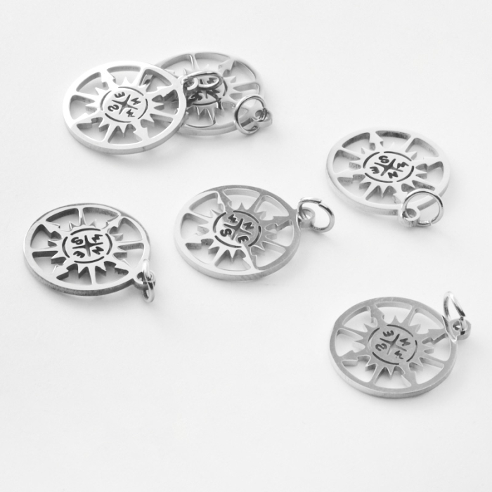 Zawieszka ze stali chirurgicznej róża wiatrów w kolorze srebrnym 17mmTo starannie wykonany produkt ze stali chirurgicznej 316L, który dobrze prezentuje się w codziennym użytkowaniu. W biżuterii handmade stal chirurgiczna 316L jest ceniona za dobry wygląd, odporność na korozję i wygodę codziennego użytkowania.Zawieszka ze stali chirurgicznej 316L to dekoracyjny element, który nadaje biżuterii charakteru i pozwala tworzyć spersonalizowane projekty. Świetnie sprawdza się w naszyjnikach, bransoletkach, kolczykach oraz drobnych charmsach.Forma lub motyw