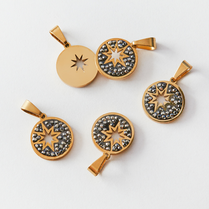 Zawieszka ze stali chirurgicznej róża wiatrów wysadzana cyrkoniami w kolorze złotym 14mm PVDTo starannie wykonany produkt ze stali chirurgicznej 316L, który dobrze prezentuje się w codziennym użytkowaniu. Stal chirurgiczna 316L jest ceniona za odporność na korozję i estetyczny wygląd w codziennym użytkowaniu. Wykończenie w kolorze złotym uzyskane metodą PVD.Zawieszka ze stali chirurgicznej 316L to dekoracyjny element, który nadaje biżuterii charakteru i pozwala tworzyć spersonalizowane projekty. Świetnie sprawdza się w naszyjnikach, bransoletkach, kolczykach oraz drobnych charmsach.Forma lub motyw