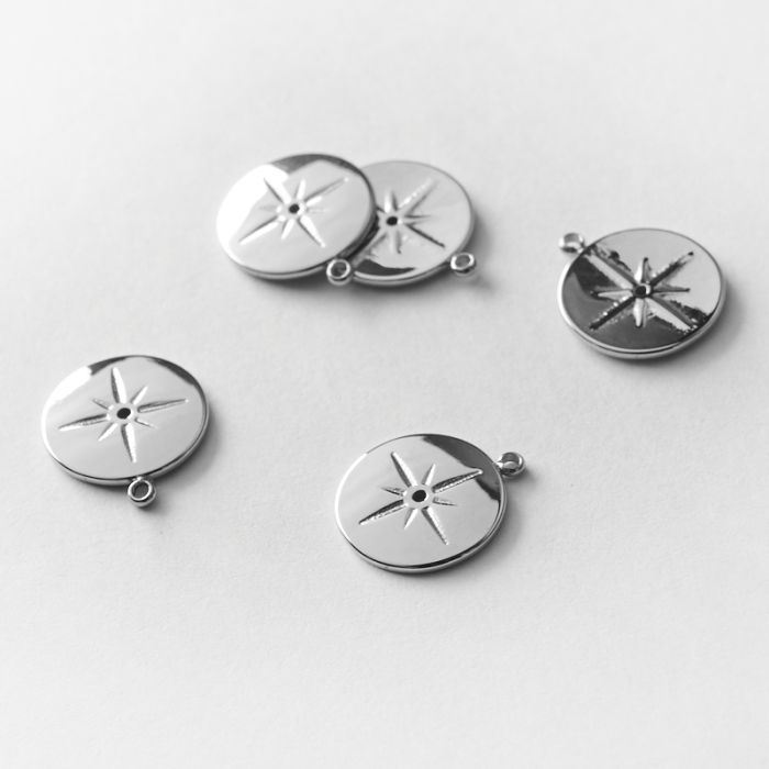 Zawieszka ze stali chirurgicznej róża wiatrów z dziurką w kolorze srebrnym 14mm