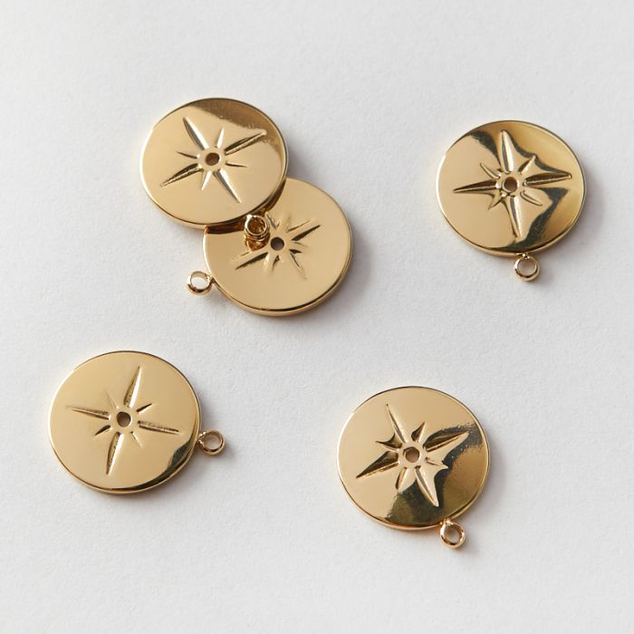 Zawieszka ze stali chirurgicznej róża wiatrów z dziurką w kolorze złotym 14mm PVD