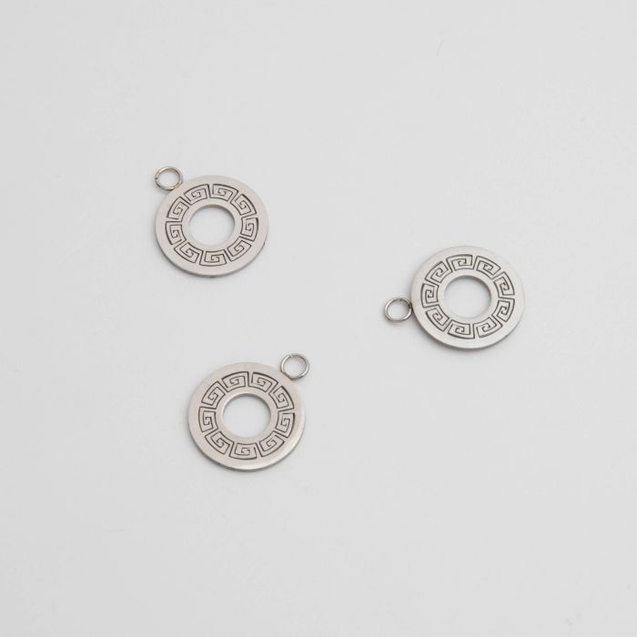 Zawieszka ze stali chirurgicznej rozeta w stylu greckim w kolorze srebrnym 15mm