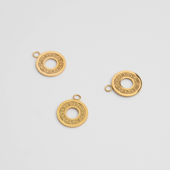 Zawieszka ze stali chirurgicznej rozeta w stylu greckim w kolorze złotym 15mmTo starannie wykonany produkt ze stali chirurgicznej 316L, który dobrze prezentuje się w codziennym użytkowaniu. Stal chirurgiczna 316L dobrze sprawdza się w biżuterii noszonej na co dzień, ponieważ łączy trwałość z estetycznym wykończeniem.Zawieszka ze stali chirurgicznej 316L to dekoracyjny element, który nadaje biżuterii charakteru i pozwala tworzyć spersonalizowane projekty. Świetnie sprawdza się w naszyjnikach, bransoletkach, kolczykach oraz drobnych charmsach.Forma lub motyw
