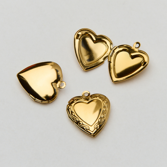 Zawieszka ze stali chirurgicznej sekretnik serce ze zdobieniami w kolorze złotym 22,5mm PVDTo trwały element biżuterii lub półfabrykat jubilerski, który dobrze sprawdza się w codziennych realizacjach. To materiał chętnie wybierany do biżuterii handmade ze względu na trwałość, estetykę i wygodę użytkowania. Wykończenie w kolorze złotym uzyskane metodą PVD.Zawieszka ze stali chirurgicznej 316L to dekoracyjny element, który nadaje biżuterii charakteru i pozwala tworzyć spersonalizowane projekty. Świetnie sprawdza się w naszyjnikach, bransoletkach, kolczykach oraz drobnych charmsach.Forma lub motyw