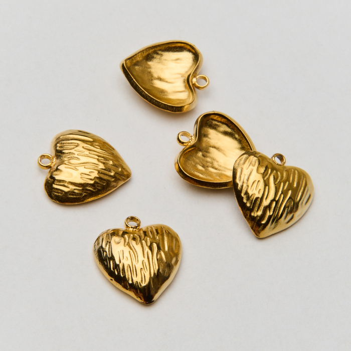 Zawieszka ze stali chirurgicznej serce nacinane w kolorze złotym 13,5mm PVD