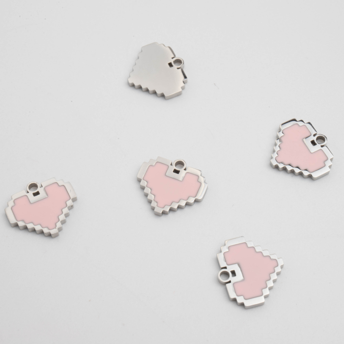 Zawieszka ze stali chirurgicznej serce pixelowe z emalią w kolorze srebrnym 12mmTo starannie wykonany produkt ze stali chirurgicznej 316L, który dobrze prezentuje się w codziennym użytkowaniu. Stal chirurgiczna 316L dobrze sprawdza się w biżuterii noszonej na co dzień, ponieważ łączy trwałość z estetycznym wykończeniem.Zawieszka ze stali chirurgicznej 316L to dekoracyjny element, który nadaje biżuterii charakteru i pozwala tworzyć spersonalizowane projekty. Świetnie sprawdza się w naszyjnikach, bransoletkach, kolczykach oraz drobnych charmsach.Forma lub motyw