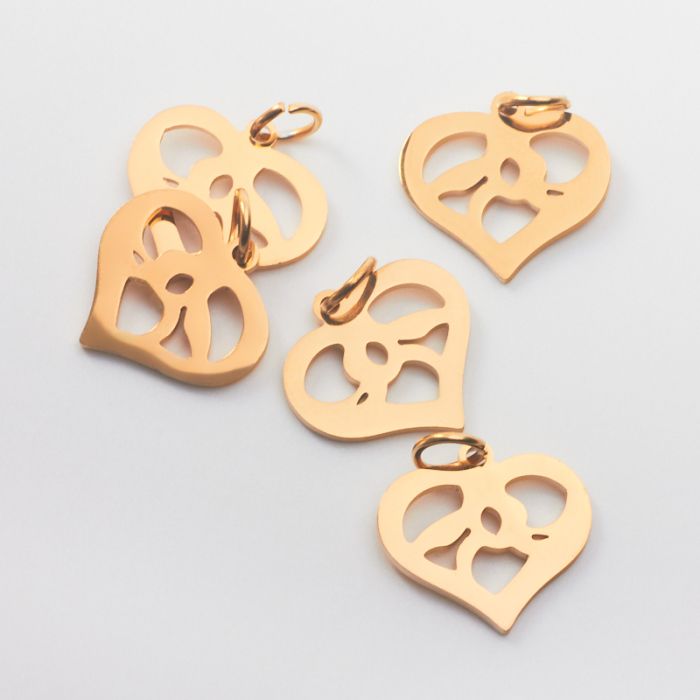 Zawieszka ze stali chirurgicznej serce w kolorze złotym 13mm