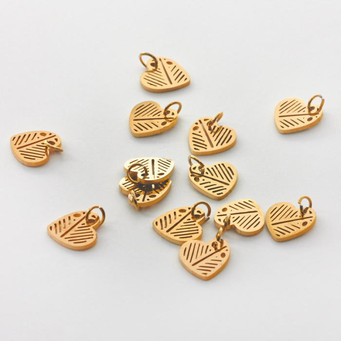 Zawieszka ze stali chirurgicznej serce w paski w kolorze złotym 7,5mm