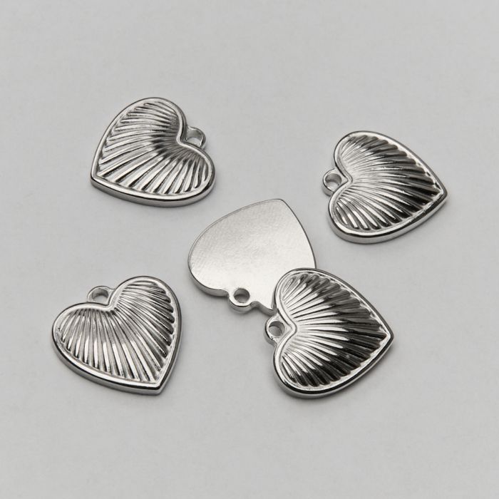 Zawieszka ze stali chirurgicznej serce w prążki w kolorze srebrnym 15mm