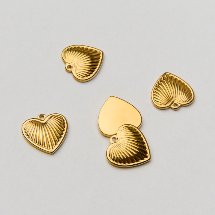 Zawieszka ze stali chirurgicznej serce w prążki w kolorze złotym 15mm PVD
