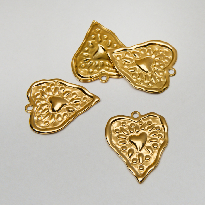 Zawieszka ze stali chirurgicznej serce w sercu w kolorze złotym 35mm PVD