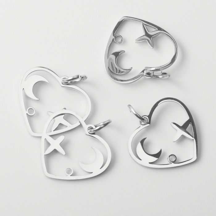 Zawieszka ze stali chirurgicznej serce z księżycem i gwiazdą w kolorze srebrnym 13mm