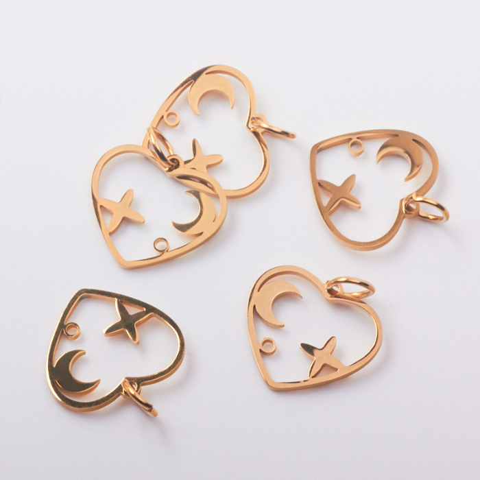 Zawieszka ze stali chirurgicznej serce z księżycem i gwiazdą w kolorze złotym 13mm