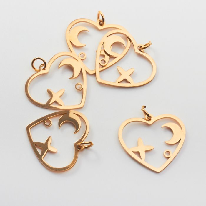 Zawieszka ze stali chirurgicznej serce z księżycem i gwiazdą w kolorze złotym 19,5mm