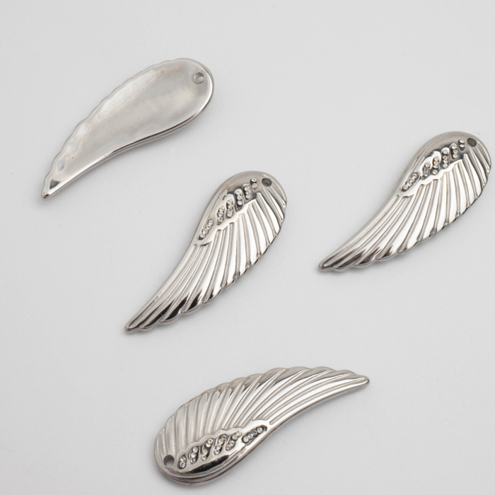 Zawieszka ze stali chirurgicznej skrzydło z cyrkoniami w kolorze srebrnym 31,5mmTo trwały element biżuterii lub półfabrykat jubilerski, który dobrze sprawdza się w codziennych realizacjach. To materiał chętnie wybierany do biżuterii handmade ze względu na trwałość, estetykę i wygodę użytkowania.Zawieszka ze stali chirurgicznej 316L to dekoracyjny element, który nadaje biżuterii charakteru i pozwala tworzyć spersonalizowane projekty. Świetnie sprawdza się w naszyjnikach, bransoletkach, kolczykach oraz drobnych charmsach.Forma lub motyw