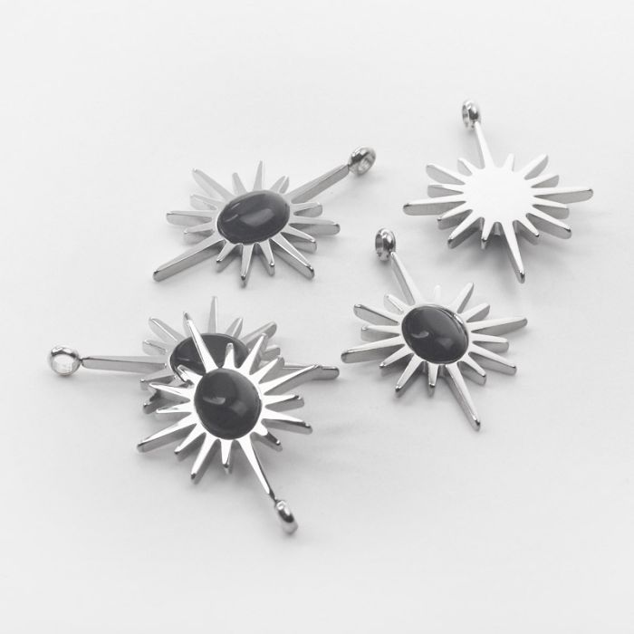 Zawieszka ze stali chirurgicznej słońce z onyksem 30mm