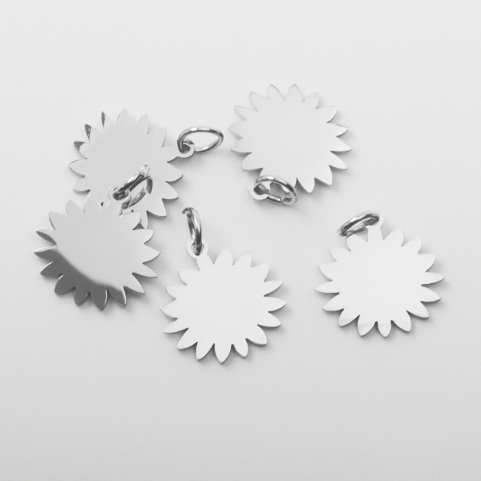 Zawieszka ze stali chirurgicznej słoneczko w kolorze srebrnym 13mmTo trwały element biżuterii lub półfabrykat jubilerski, który dobrze sprawdza się w codziennych realizacjach. W biżuterii handmade stal chirurgiczna 316L jest ceniona za dobry wygląd, odporność na korozję i wygodę codziennego użytkowania.Zawieszka ze stali chirurgicznej 316L to dekoracyjny element, który nadaje biżuterii charakteru i pozwala tworzyć spersonalizowane projekty. Świetnie sprawdza się w naszyjnikach, bransoletkach, kolczykach oraz drobnych charmsach.Forma lub motyw