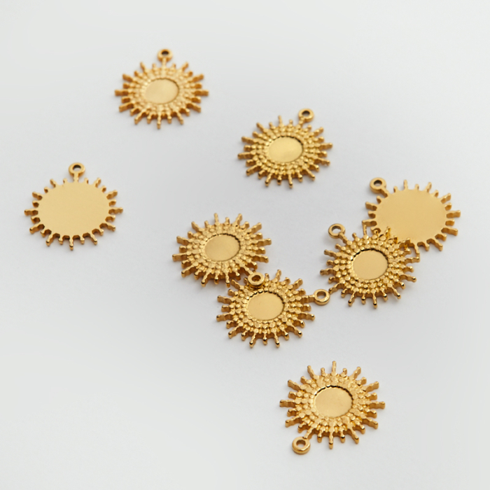 Zawieszka ze stali chirurgicznej słoneczko w kolorze złotym 15,5mmTo estetyczny element biżuteryjny ze stali chirurgicznej 316L, chętnie wybierany do nowoczesnych projektów. W biżuterii handmade stal chirurgiczna 316L jest ceniona za dobry wygląd, odporność na korozję i wygodę codziennego użytkowania.Zawieszka ze stali chirurgicznej 316L to dekoracyjny element, który nadaje biżuterii charakteru i pozwala tworzyć spersonalizowane projekty. Świetnie sprawdza się w naszyjnikach, bransoletkach, kolczykach oraz drobnych charmsach.Forma lub motyw