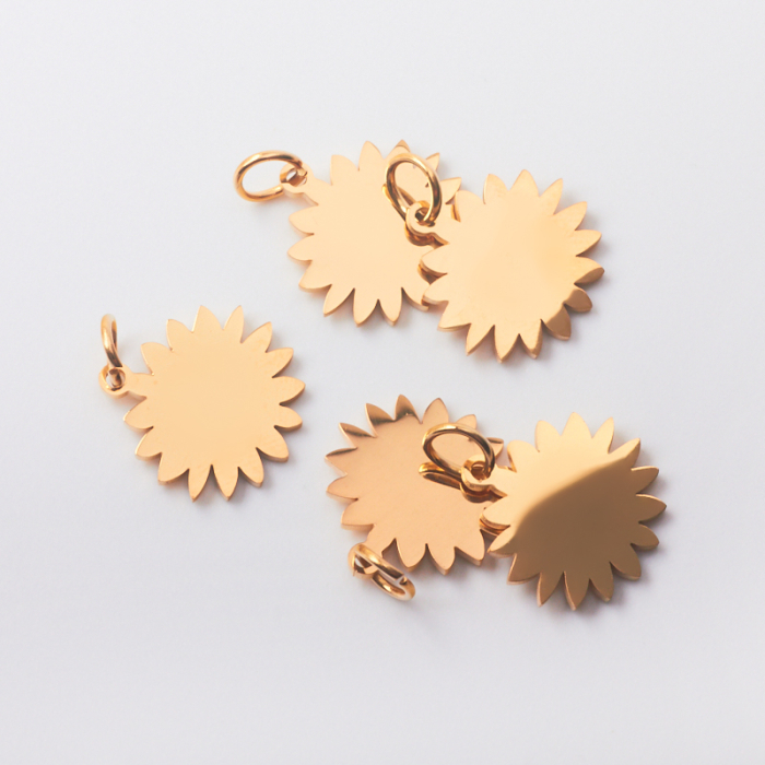 Zawieszka ze stali chirurgicznej słoneczko w kolorze zlotym 15mm