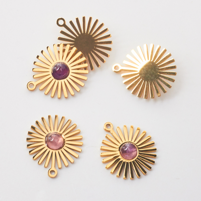 Zawieszka ze stali chirurgicznej słoneczko z ametystem w kolorze złotym 14mm