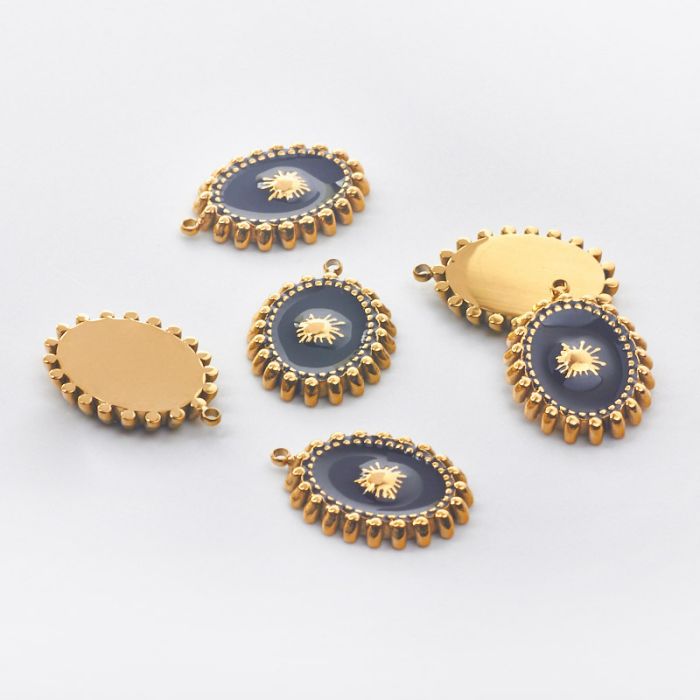 Zawieszka ze stali chirurgicznej słoneczko z czarną emalią w kolorze złotym 20mm