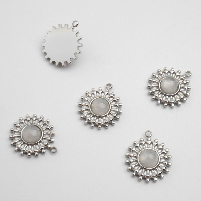 Zawieszka ze stali chirurgicznej słoneczko z kamieniem słonecznym w kolorze srebrnym17,5mmTo starannie wykonany produkt ze stali szlachetnej, który dobrze prezentuje się w codziennym użytkowaniu. Stal szlachetna jest ceniona za odporność na korozję i estetyczny wygląd w codziennym użytkowaniu.Zawieszka ze stali szlachetnej to dekoracyjny element, który nadaje biżuterii charakteru i pozwala tworzyć spersonalizowane projekty. Świetnie sprawdza się w naszyjnikach, bransoletkach, kolczykach oraz drobnych charmsach.Forma lub motyw