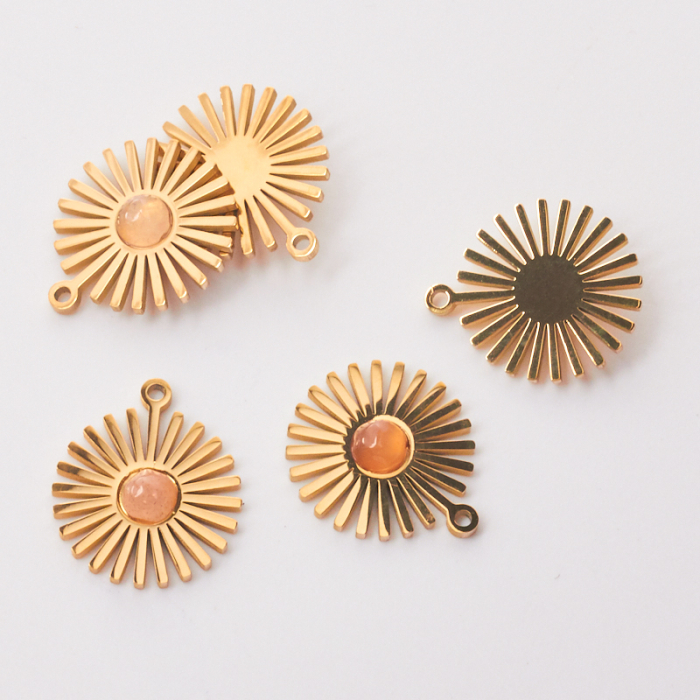 Zawieszka ze stali chirurgicznej słoneczko z kamieniem słonecznym w kolorze złotym 14mmTo starannie wykonany produkt ze stali chirurgicznej 316L, który dobrze prezentuje się w codziennym użytkowaniu. To materiał chętnie wybierany do biżuterii handmade ze względu na trwałość, estetykę i wygodę użytkowania.Zawieszka ze stali chirurgicznej 316L to dekoracyjny element, który nadaje biżuterii charakteru i pozwala tworzyć spersonalizowane projekty. Świetnie sprawdza się w naszyjnikach, bransoletkach, kolczykach oraz drobnych charmsach.Forma lub motyw