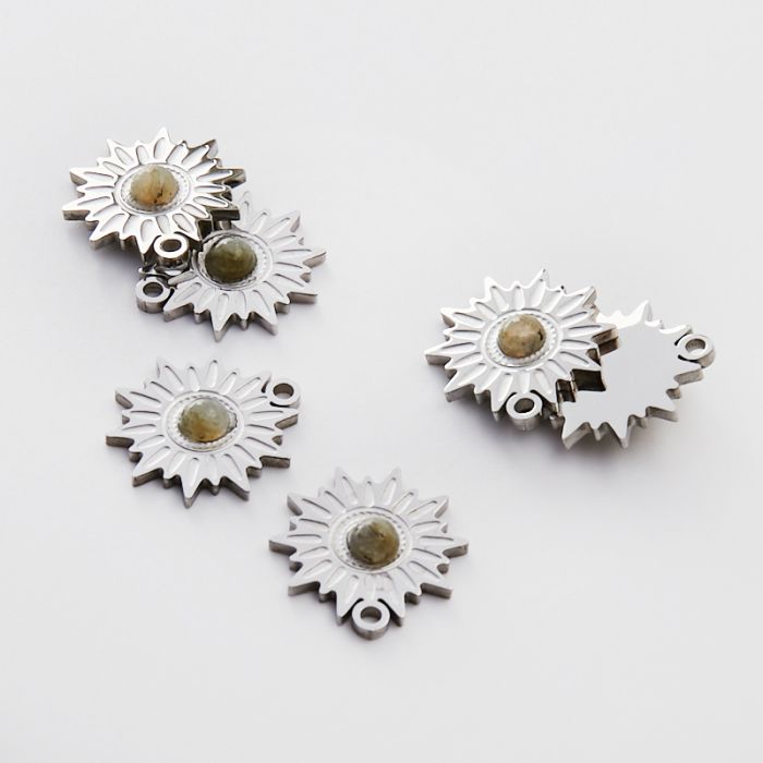 Zawieszka ze stali chirurgicznej słoneczko z labradorytem w kolorze srebrnym 17mm