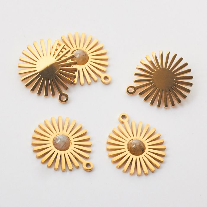 Zawieszka ze stali chirurgicznej słoneczko z labradorytem w kolorze złotym 14mm
