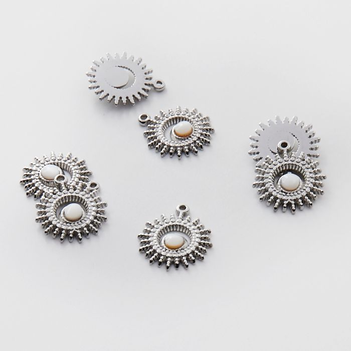 Zawieszka ze stali chirurgicznej słoneczko z masą perłową w kolorze srebrnym 20,5mm