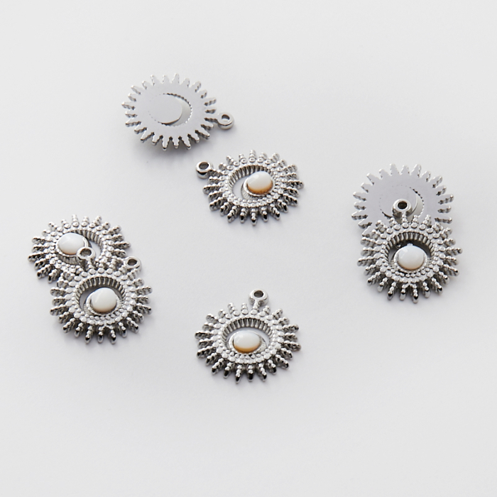 Zawieszka ze stali chirurgicznej słoneczko z masą perłową w kolorze srebrnym 20,5mmTo dopracowany produkt ze stali chirurgicznej 316L, który łączy praktyczność z estetycznym wyglądem. To materiał chętnie wybierany do biżuterii handmade ze względu na trwałość, estetykę i wygodę użytkowania.Zawieszka ze stali chirurgicznej 316L to dekoracyjny element, który nadaje biżuterii charakteru i pozwala tworzyć spersonalizowane projekty. Świetnie sprawdza się w naszyjnikach, bransoletkach, kolczykach oraz drobnych charmsach.Forma lub motyw