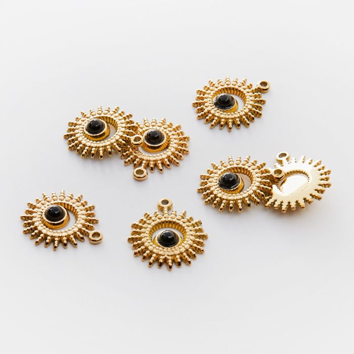 Zawieszka ze stali chirurgicznej słoneczko z onyksem w kolorze złotym 20,5mm PVD