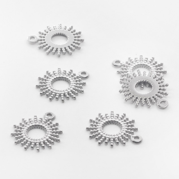 Zawieszka ze stali chirurgicznej słoneczko z promieniami 17,5mmTo estetyczny element biżuteryjny ze stali chirurgicznej 316L, chętnie wybierany do nowoczesnych projektów. W biżuterii handmade stal chirurgiczna 316L jest ceniona za dobry wygląd, odporność na korozję i wygodę codziennego użytkowania.Zawieszka ze stali chirurgicznej 316L to dekoracyjny element, który nadaje biżuterii charakteru i pozwala tworzyć spersonalizowane projekty. Świetnie sprawdza się w naszyjnikach, bransoletkach, kolczykach oraz drobnych charmsach.Forma lub motyw