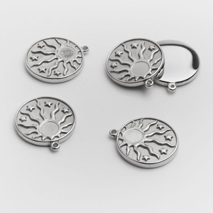 Zawieszka ze stali chirurgicznej słoneczko z promieniami w kółku w kolorze srebrnym 15mm