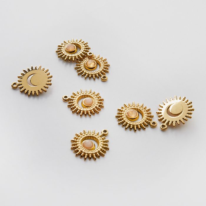 Zawieszka ze stali chirurgicznej słoneczko z różowym kryształem górskim w kolorze złotym 20,5mm PVD