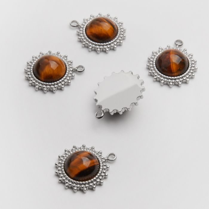 Zawieszka ze stali chirurgicznej słoneczko z tygrysim okiem w kolorze srebrnym 19mm