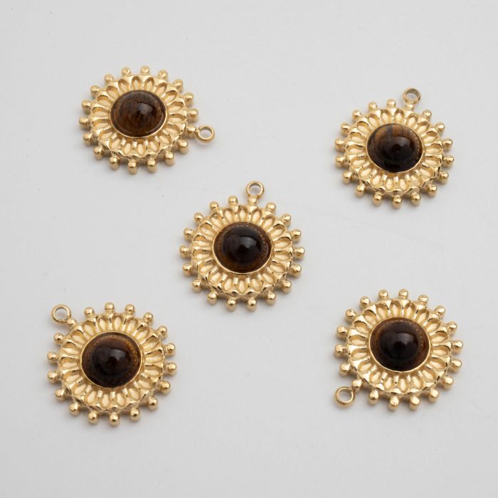 Zawieszka ze stali chirurgicznej słoneczko z tygrysim okiem w kolorze złotym 17,5mm PVD