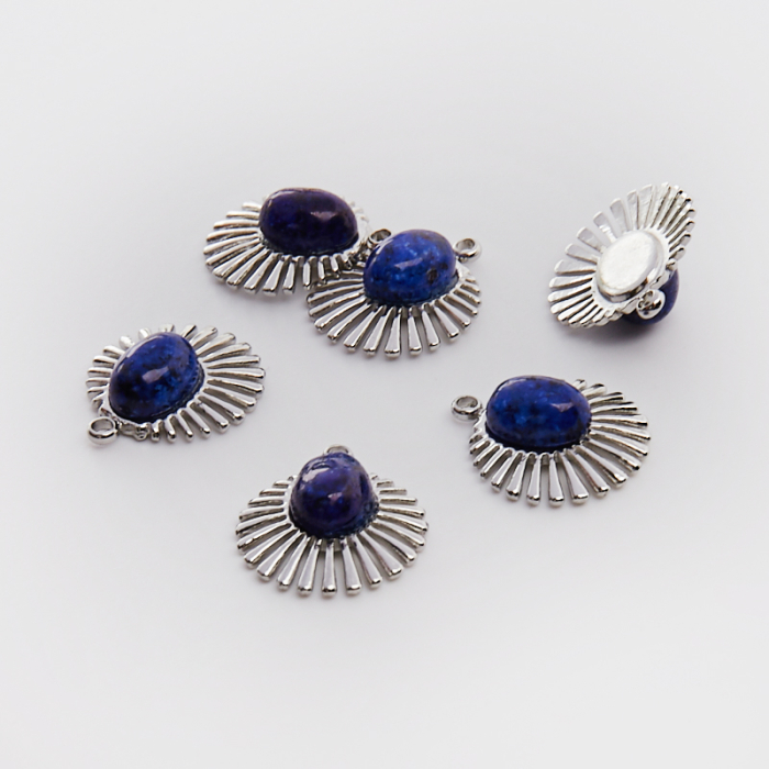 Zawieszka ze stali chirurgicznej wachlarz z lapis lazuli w kolorze srebrnym 15,5mmTo starannie wykonany produkt ze stali chirurgicznej 316L, który dobrze prezentuje się w codziennym użytkowaniu. Stal chirurgiczna 316L jest ceniona za odporność na korozję i estetyczny wygląd w codziennym użytkowaniu.Zawieszka ze stali chirurgicznej 316L to dekoracyjny element, który nadaje biżuterii charakteru i pozwala tworzyć spersonalizowane projekty. Świetnie sprawdza się w naszyjnikach, bransoletkach, kolczykach oraz drobnych charmsach.Forma lub motyw