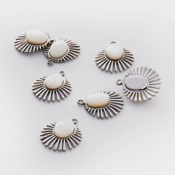 Zawieszka ze stali chirurgicznej wachlarz z masą perłową w kolorze srebrnym 15,5mm