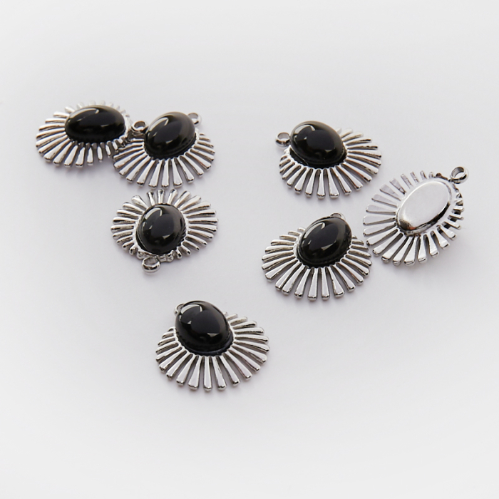 Zawieszka ze stali chirurgicznej wachlarz z onyksem w kolorze srebrnym 15,5mmTo estetyczny element biżuteryjny ze stali szlachetnej, chętnie wybierany do nowoczesnych projektów. Stal szlachetna jest ceniona za odporność na korozję i estetyczny wygląd w codziennym użytkowaniu.Zawieszka ze stali szlachetnej to dekoracyjny element, który nadaje biżuterii charakteru i pozwala tworzyć spersonalizowane projekty. Świetnie sprawdza się w naszyjnikach, bransoletkach, kolczykach oraz drobnych charmsach.Forma lub motyw