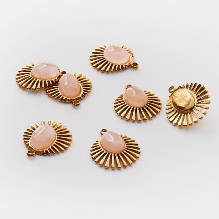 Zawieszka ze stali chirurgicznej wachlarz z różowym kryształem górskim w kolorze złotym 15,5mm PVDTo starannie wykonany produkt ze stali chirurgicznej 316L, który dobrze prezentuje się w codziennym użytkowaniu. W biżuterii handmade stal chirurgiczna 316L jest ceniona za dobry wygląd, odporność na korozję i wygodę codziennego użytkowania. Wykończenie w kolorze złotym uzyskane metodą PVD.Zawieszka ze stali chirurgicznej 316L to dekoracyjny element, który nadaje biżuterii charakteru i pozwala tworzyć spersonalizowane projekty. Świetnie sprawdza się w naszyjnikach, bransoletkach, kolczykach oraz drobnych charmsach.Forma lub motyw