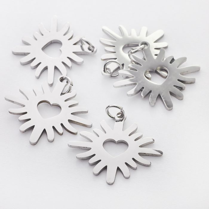 Zawieszka ze stali chirurgicznej wycięte serce w kwiatku w kolorze srebrnym 22mm