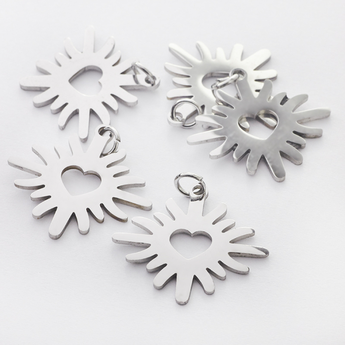 Zawieszka ze stali chirurgicznej wycięte serce w kwiatku w kolorze srebrnym 22mmTo trwały element biżuterii lub półfabrykat jubilerski, który dobrze sprawdza się w codziennych realizacjach. To materiał chętnie wybierany do biżuterii handmade ze względu na trwałość, estetykę i wygodę użytkowania.Zawieszka ze stali szlachetnej to dekoracyjny element, który nadaje biżuterii charakteru i pozwala tworzyć spersonalizowane projekty. Świetnie sprawdza się w naszyjnikach, bransoletkach, kolczykach oraz drobnych charmsach.Forma lub motyw