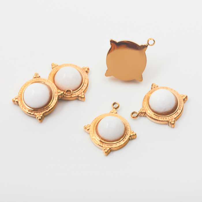 Zawieszka ze stali chirurgicznej z białym jadeitem w kolorze złotym 16mmTo estetyczny element biżuteryjny ze stali chirurgicznej 316L, chętnie wybierany do nowoczesnych projektów. Stal chirurgiczna 316L jest ceniona za odporność na korozję i estetyczny wygląd w codziennym użytkowaniu.Zawieszka ze stali chirurgicznej 316L to dekoracyjny element, który nadaje biżuterii charakteru i pozwala tworzyć spersonalizowane projekty. Świetnie sprawdza się w naszyjnikach, bransoletkach, kolczykach oraz drobnych charmsach.Forma lub motyw