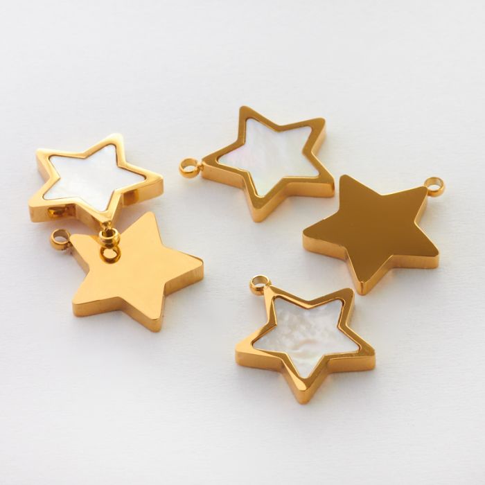 Zawieszka ze stali chirurgicznej z masą perłową gwiazdka w kolorze złotym 13,5mm