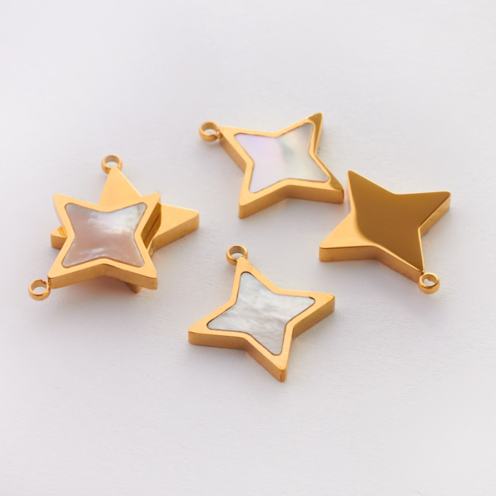 Zawieszka ze stali chirurgicznej z masą perłową gwiazdka w kolorze złotym 15,5mmTo dopracowany produkt ze stali chirurgicznej 316L, który łączy praktyczność z estetycznym wyglądem. W biżuterii handmade stal chirurgiczna 316L jest ceniona za dobry wygląd, odporność na korozję i wygodę codziennego użytkowania.Zawieszka ze stali chirurgicznej 316L to dekoracyjny element, który nadaje biżuterii charakteru i pozwala tworzyć spersonalizowane projekty. Świetnie sprawdza się w naszyjnikach, bransoletkach, kolczykach oraz drobnych charmsach.Forma lub motyw