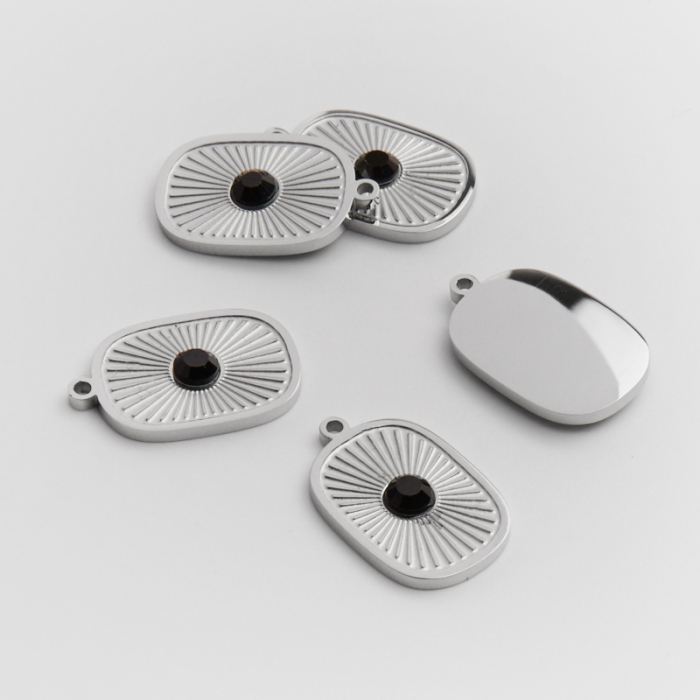 Zawieszka ze stali chirurgicznej zaokrąglony prostokąt z czarną cyrkonią w kolorze srebrnym 18mmTo dopracowany produkt ze stali chirurgicznej 316L, który łączy praktyczność z estetycznym wyglądem. W biżuterii handmade stal chirurgiczna 316L jest ceniona za dobry wygląd, odporność na korozję i wygodę codziennego użytkowania.Zawieszka ze stali chirurgicznej 316L to dekoracyjny element, który nadaje biżuterii charakteru i pozwala tworzyć spersonalizowane projekty. Świetnie sprawdza się w naszyjnikach, bransoletkach, kolczykach oraz drobnych charmsach.Forma lub motyw