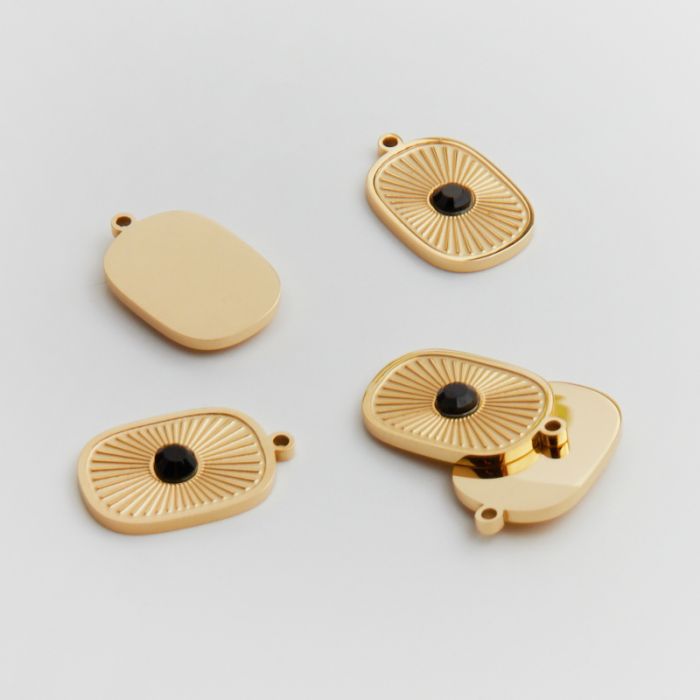 Zawieszka ze stali chirurgicznej zaokrąglony prostokąt z czarną cyrkonią w kolorze złotym 18mm PVD