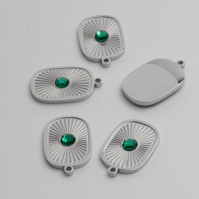 Zawieszka ze stali chirurgicznej zaokrąglony prostokąt z zieloną cyrkonią w kolorze srebrnym 18mmTo estetyczny element biżuteryjny ze stali chirurgicznej 316L, chętnie wybierany do nowoczesnych projektów. W biżuterii handmade stal chirurgiczna 316L jest ceniona za dobry wygląd, odporność na korozję i wygodę codziennego użytkowania.Zawieszka ze stali chirurgicznej 316L to dekoracyjny element, który nadaje biżuterii charakteru i pozwala tworzyć spersonalizowane projekty. Świetnie sprawdza się w naszyjnikach, bransoletkach, kolczykach oraz drobnych charmsach.Forma lub motyw