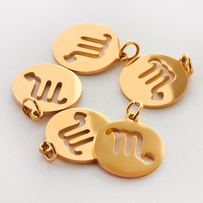 Zawieszka ze stali chirurgicznej znak zodiaku Skorpion w kolorze złotym 15mm